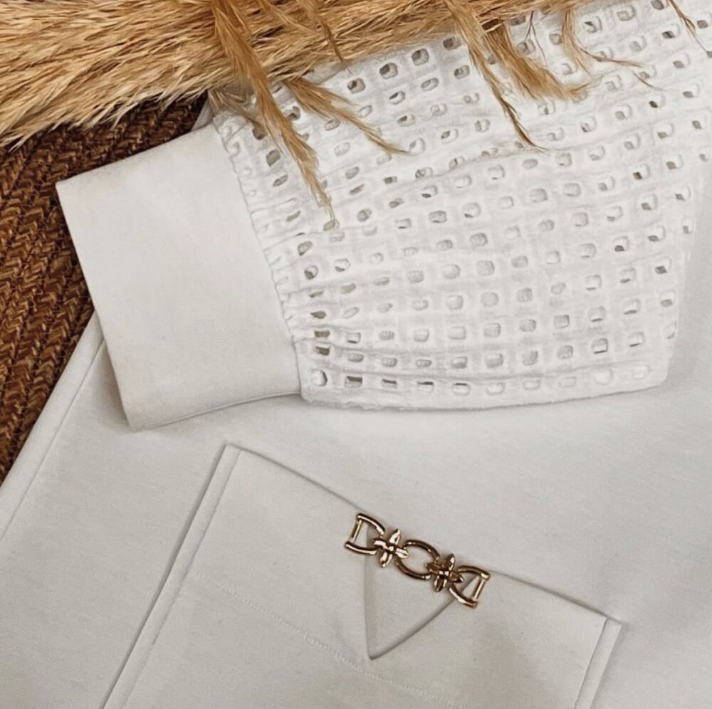 • Detay: Kollar delikli pamuk kumaş, ön cep detayı,Parmak metal aksesuar