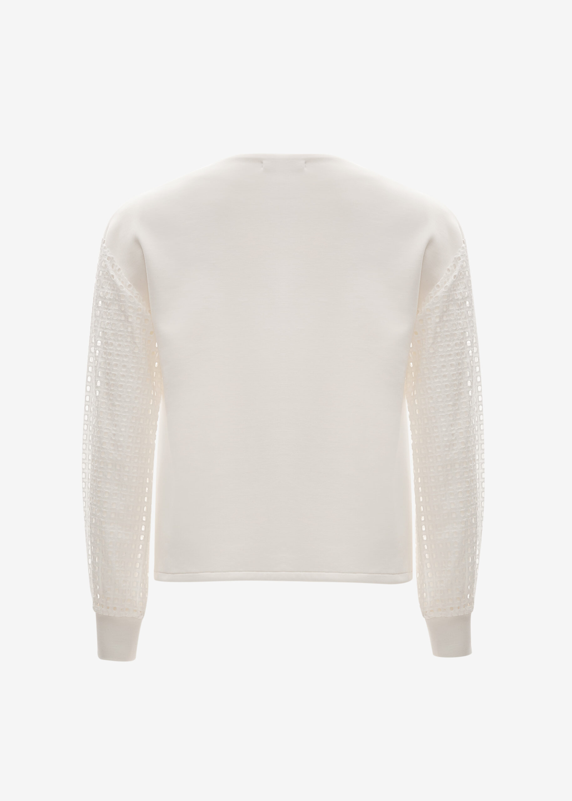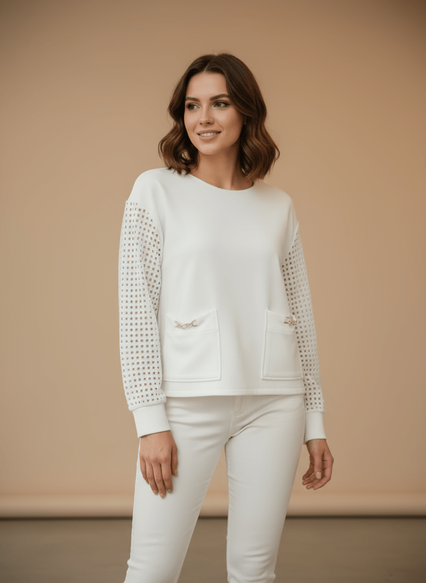 Kollarında kullanılan delikli pamuk kumaş detayıyla fark yaratan bu sweatshirt, hem sportif hem modern bir görünüm sunuyor. Rahat kalıbı, ön cep detayı ve nefes alabilen dokusuyla gün boyu konfor sağlarken, gündelik stiline enerjik bir dokunuş katıyor. Günlük kullanım ve hafta sonu kombinleri için ideal.