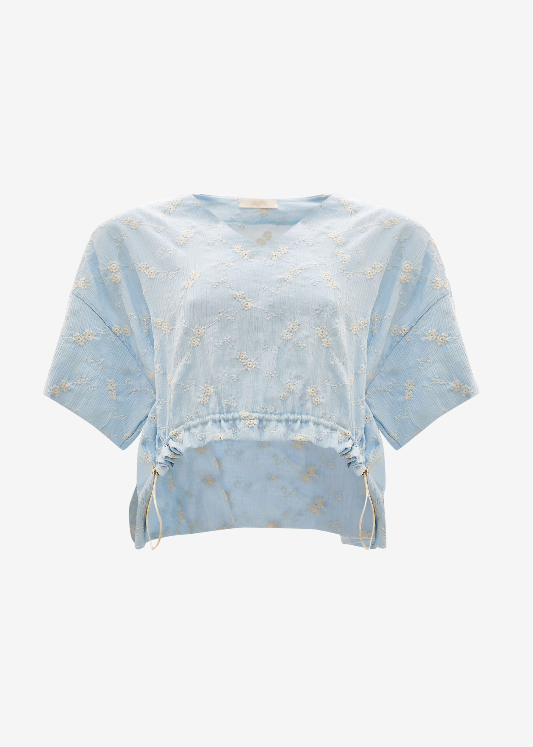 • Üst: Nakış detaylı, büzgülü, ön kısa arka uzun, V yaka