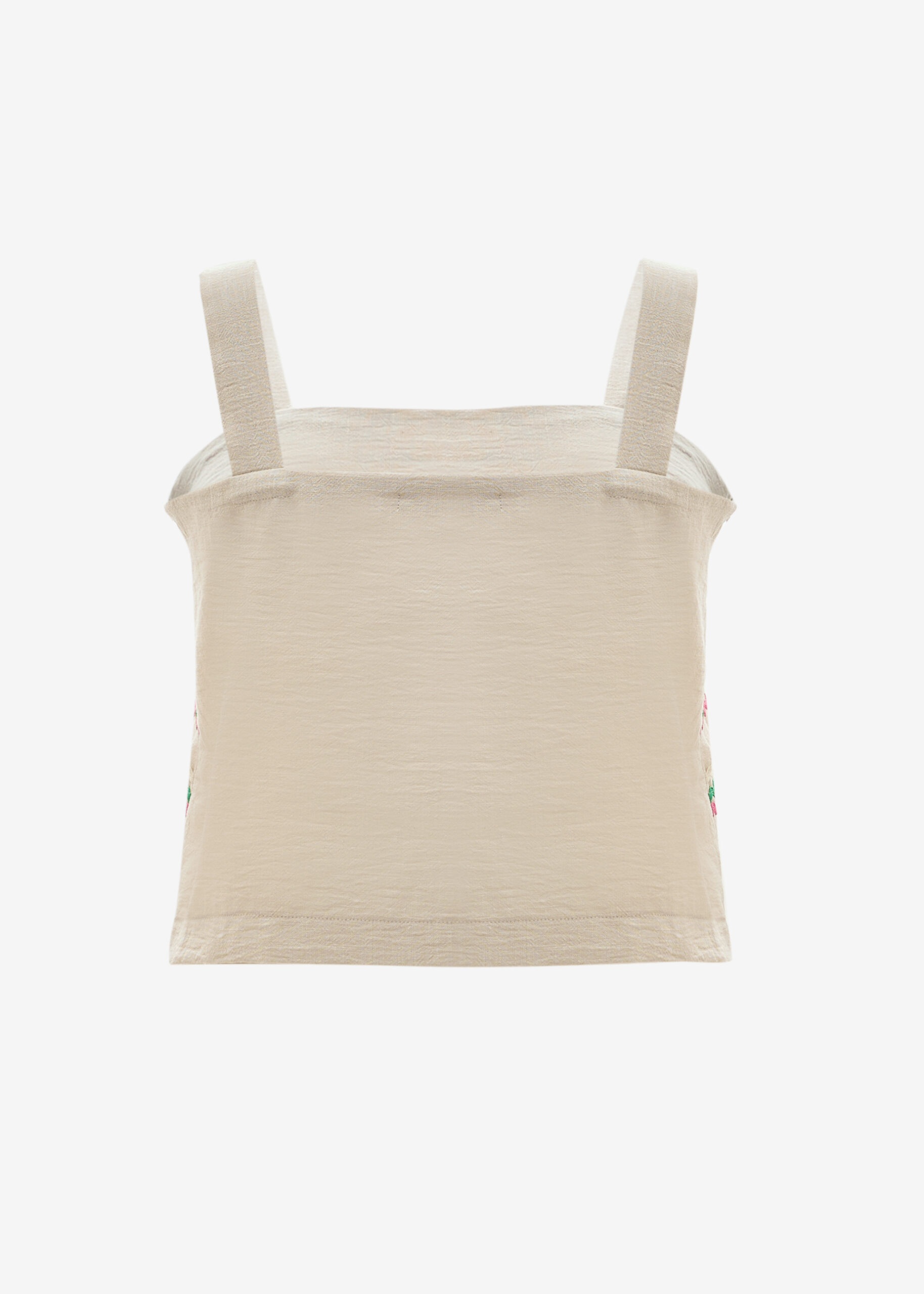 Kalın askılı modern formuyla öne çıkan bu crop bluz, iki renkli su yolu şerit detayıyla enerjik ve dikkat çekici bir görünüm kazanıyor. Fermuarlı  tasarımı sportif bir dinamizm sunarken, kısa formu ve rahat kesimiyle gün boyu konfor sağlıyor. Nefes alan hafif dokusu sayesinde şehir hayatından tatil stiline, spor-şık kombinlerden özel anlara kadar pek çok yerde kolayca kullanılabilen bu tasarım, VAURA’nın özgün ve zamansız çizgisini yansıtıyor.