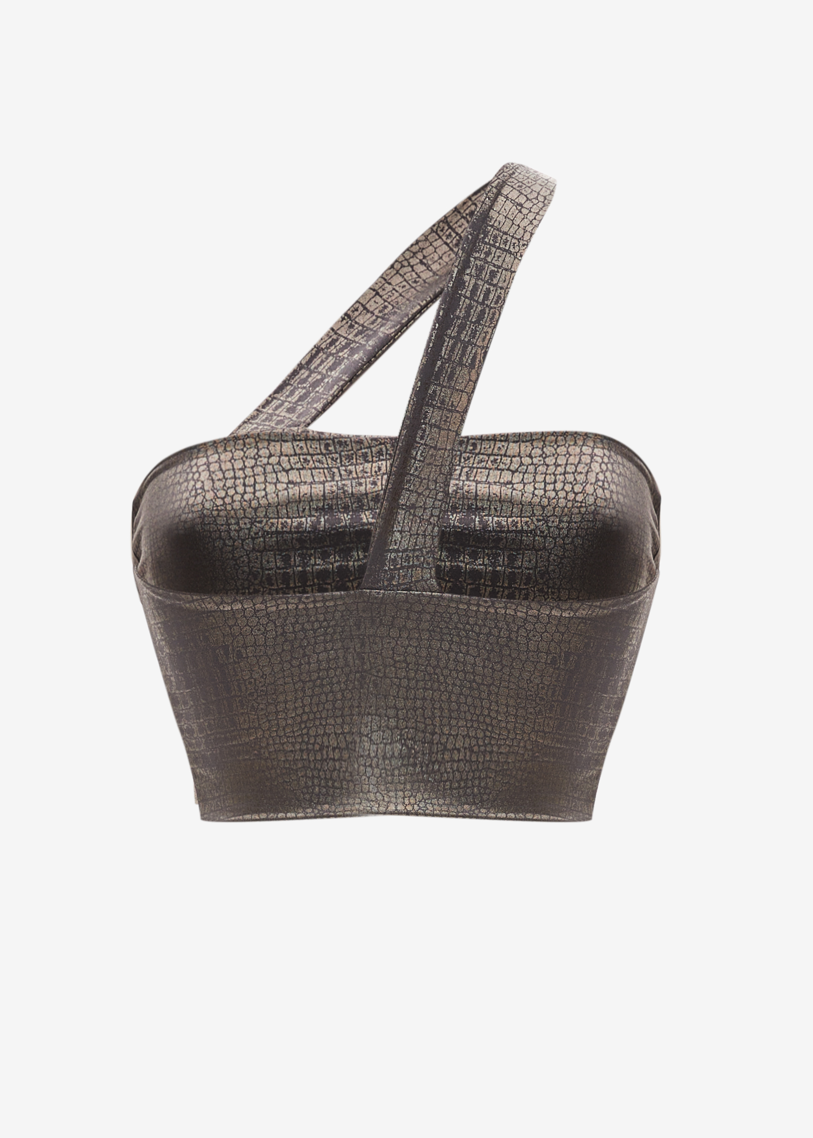 Parlak varak baskı detayıyla öne çıkan bu crop top, likralı esnek kumaşı sayesinde vücuda kusursuz bir uyum sağlar. Kısa formu modern bir siluet yaratırken, ışıltılı görünümüyle kombinlere iddialı bir dokunuş katar. Gün boyu rahatlık sunan tasarım, hem günlük şıklıkta hem de gece stilinde öne çıkmak için ideal bir seçimdir.