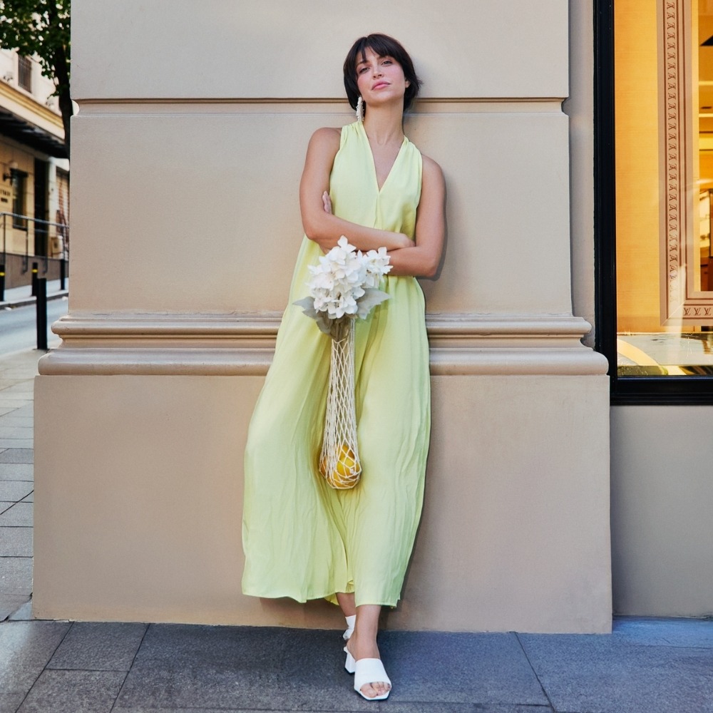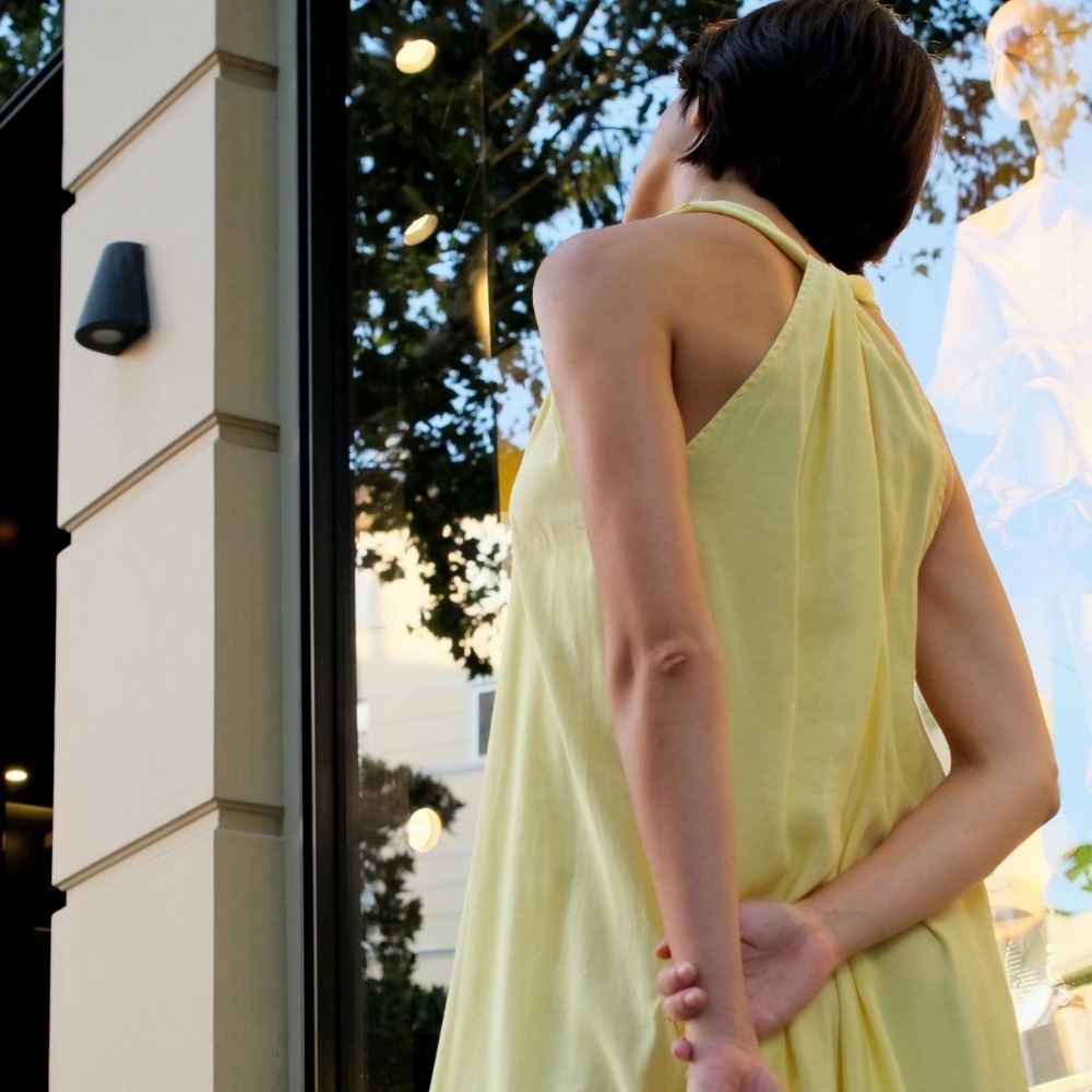 Bu yazın favori renklerinden olan elbisemiz gardırobunuzun vazgeçilmezi olacak.; Hafif ve nefes alabilir kumaşı sayesinde sıcak günlerde serin kalmanızı sağlar.; Asimetrik kesimi ve modern tasarımı ile hem günlük hem özel davetlerde rahatlıkla tercih edebilirsiniz.; Enerjik sarı rengi ile dikkat çekin, stilinizi yansıtın.
