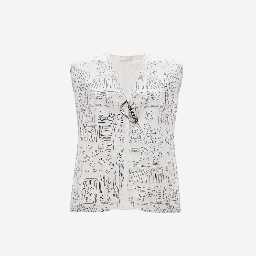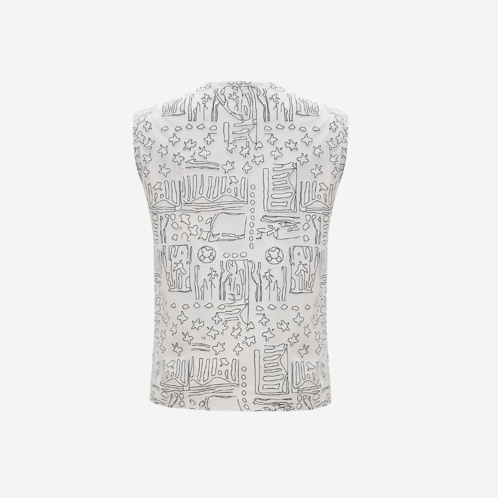 Modern ve özgün çizgileriyle öne çıkan Yeluna Yelek, rahat kalıbı,hafif yapısı ve astarlı tasarımıyla hem konfor hemde şıklığı bir arada sunuyor.Beyaz zemin üzerine el çizimi hissi veren soyut motifler, tasarıma sanatsal bir dokunuş katıyor.Ön kısmındaki metal detay,minimal ve zarif bir vurgu sağlıyor.